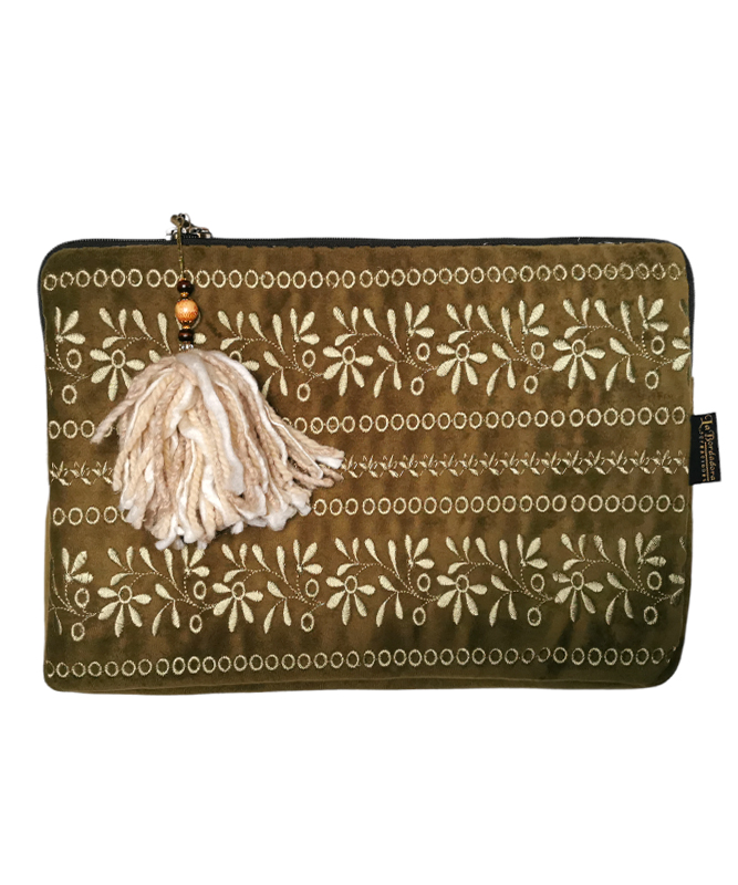 Bolso Portanotebook bordado 13′ verde musgo